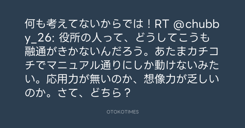 何も考えてないからでは!RT @chubby_26: 役所の人って、どうしてこうも融通がきか... -