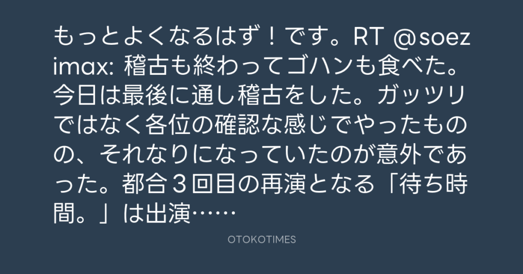 もっとよくなるはず!です。RT @soezimax: 稽古も終わってゴハンも食べた。今日は... -