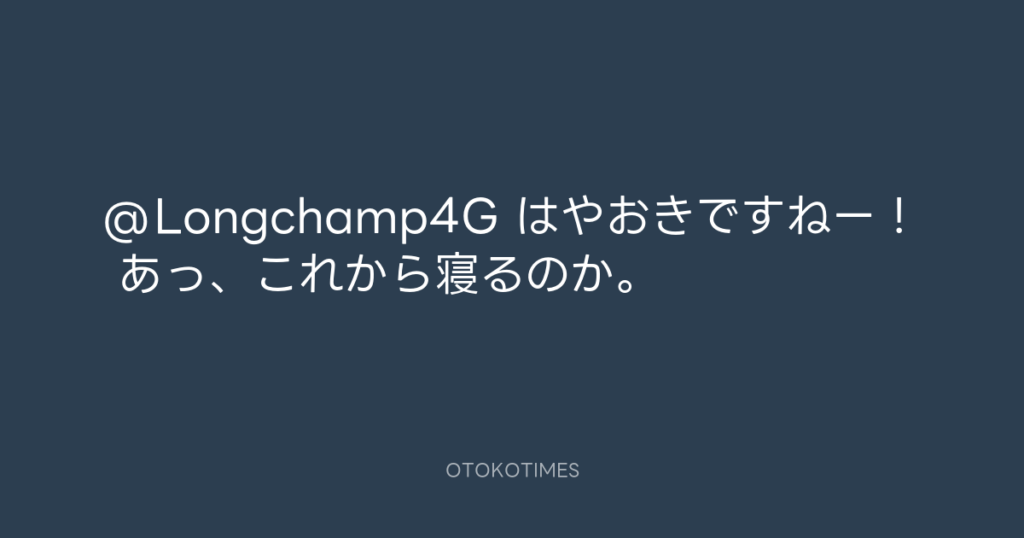 @Longchamp4G はやおきですねー! あっ、これから寝るのか。 -