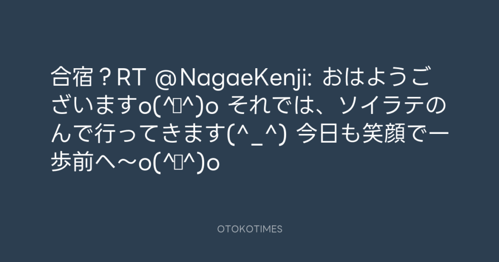 合宿?RT @NagaeKenji: おはようございますo(^▽^)o それでは、ソイラテのんで行っ... -
