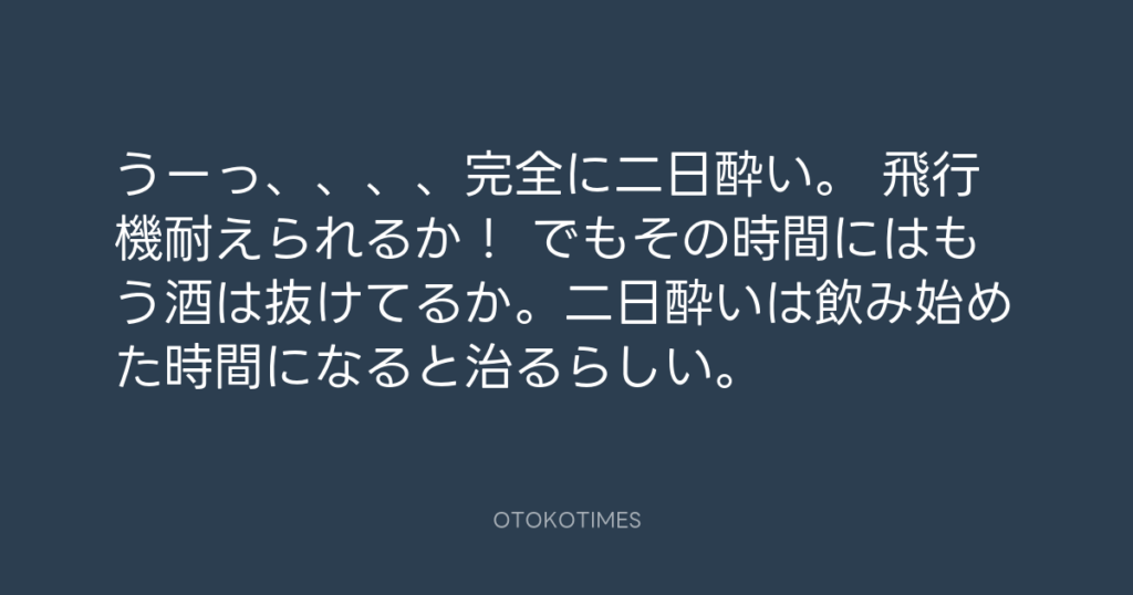 うーっ、、、、完全に二日酔い。 飛行機耐えられるか! でもその時間にはもう酒は...