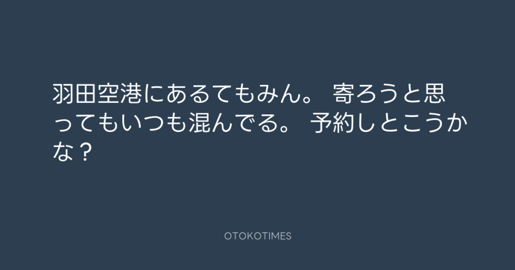 羽田空港にあるてもみん。 寄ろうと思ってもいつも混んでる。 予約しとこうかな? -