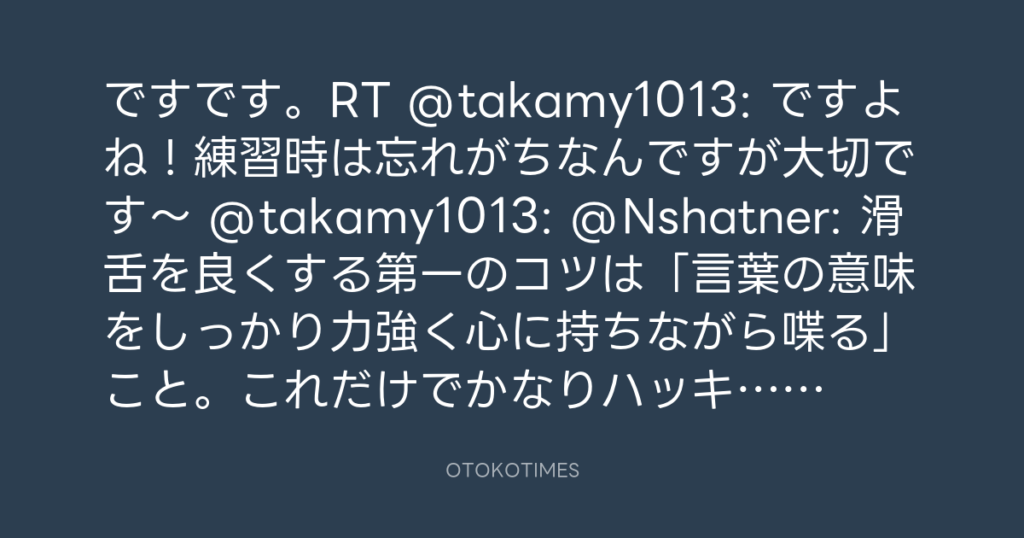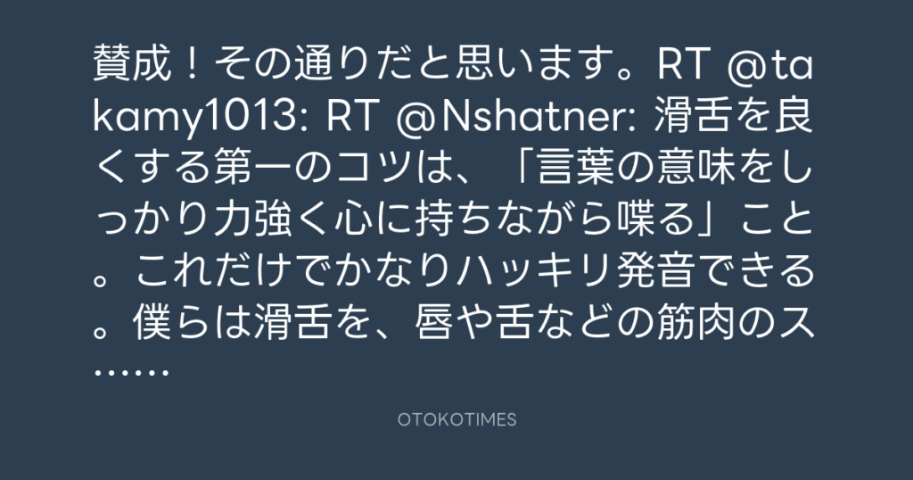 賛成!その通りだと思います。RT @takamy1013: RT @Nshatner: 滑舌を良くする第一... -