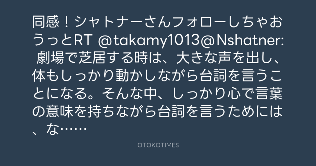 同感!シャトナーさんフォローしちゃおうっとRT @takamy1013@Nshatner: 劇場で芝居... -