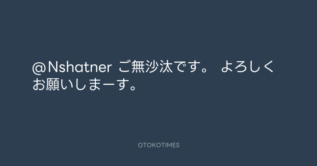 @Nshatner ご無沙汰です。 よろしくお願いしまーす。 -