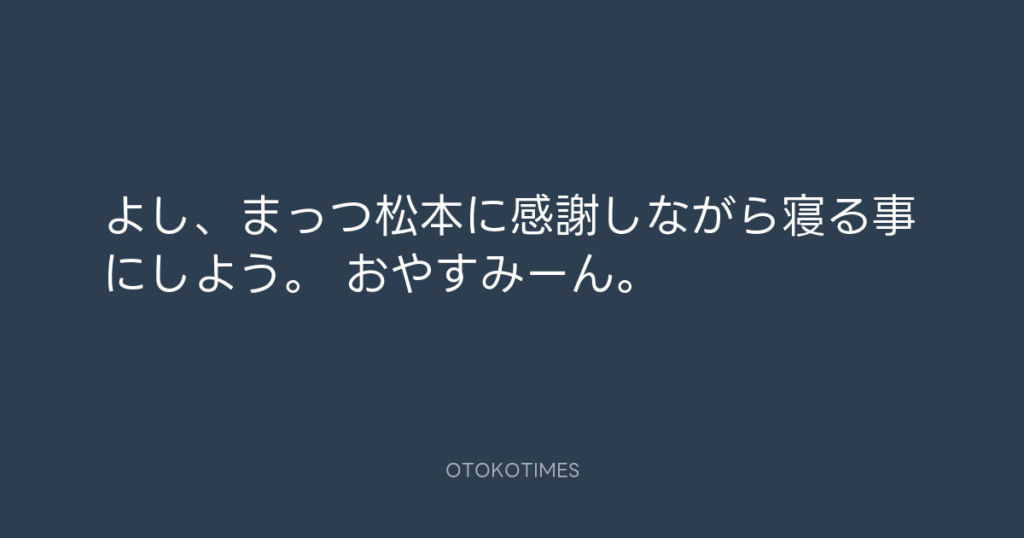 よし、まっつ松本に感謝しながら寝る事にしよう。 おやすみーん。 -