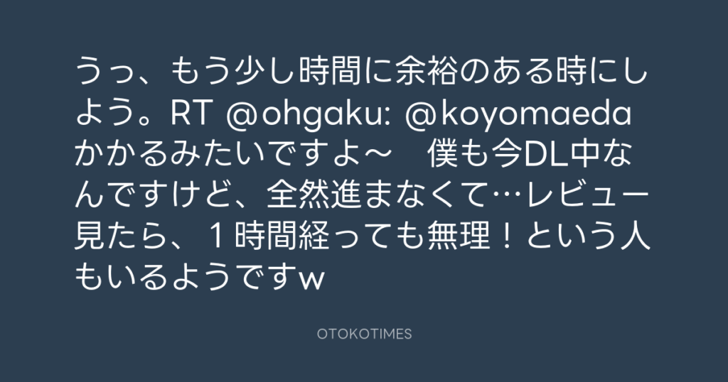うっ、もう少し時間に余裕のある時にしよう。RT @ohgaku: @koyomaeda かかるみたい... -