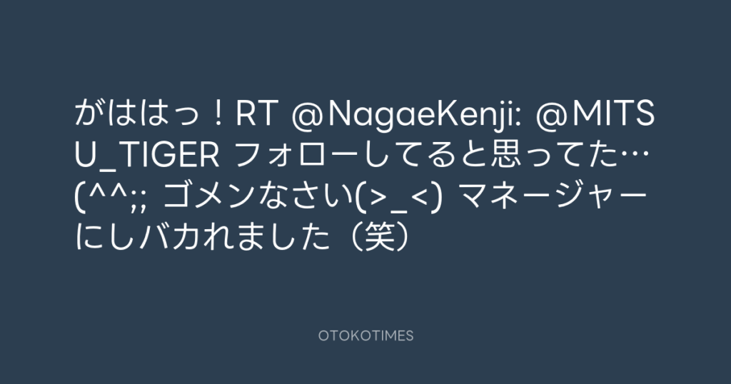がははっ!RT @NagaeKenji: @MITSU_TIGER フォローしてると思ってた…(^^;; ゴメン... -