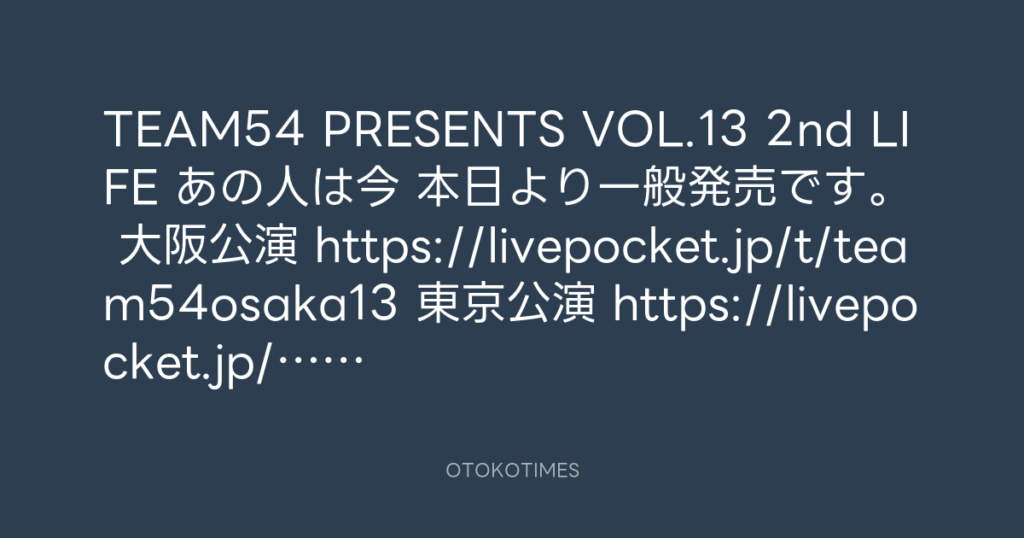 TEAM54 PRESENTS VOL.13 2nd LIFE あの人は今 本日より一般発売です。 大阪公演 ht... -