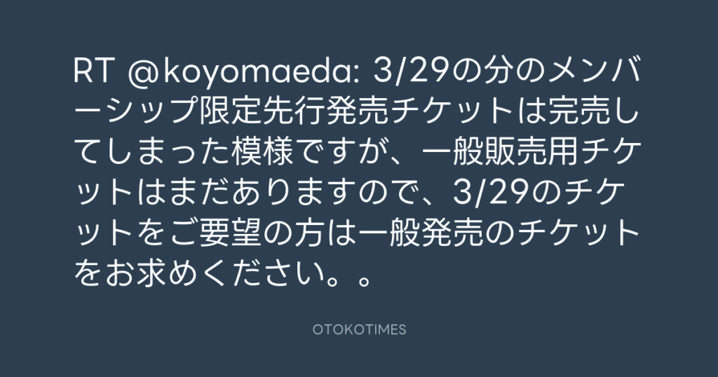 RT @koyomaeda: 3/29の分のメンバーシップ限定先行発売チケットは完売してしまった... -