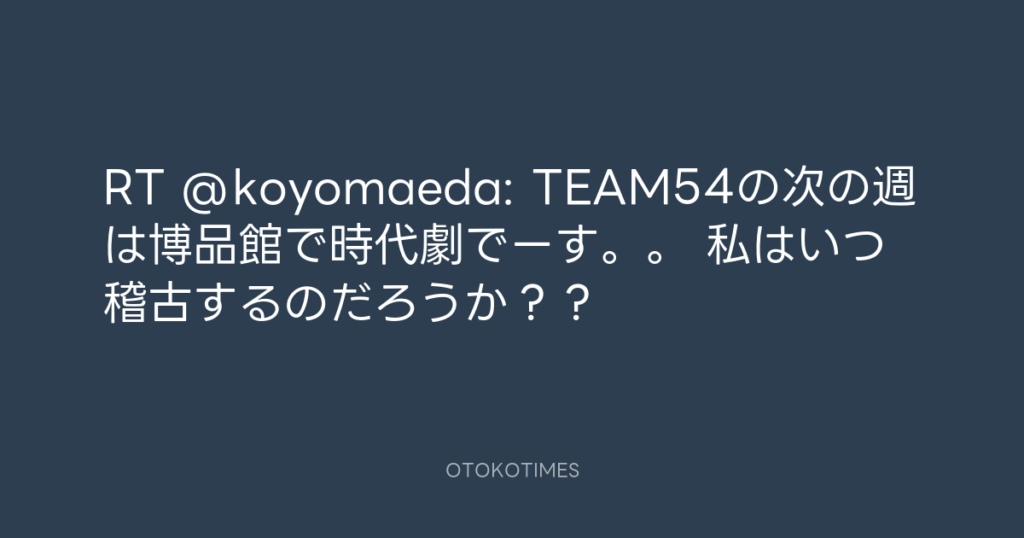 RT @koyomaeda: TEAM54の次の週は博品館で時代劇でーす。。 私はいつ稽古するのだ... -