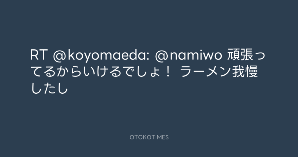 RT @koyomaeda: @namiwo 頑張ってるからいけるでしょ! ラーメン我慢したし -