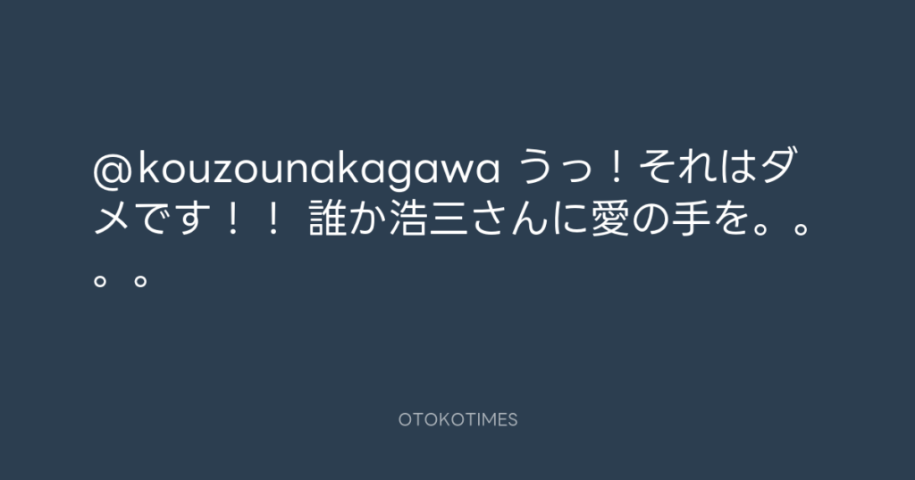@kouzounakagawa うっ!それはダメです!! 誰か浩三さんに愛の手を。。。。 -