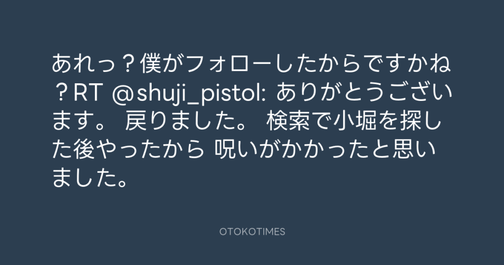 あれっ?僕がフォローしたからですかね?RT @shuji_pistol: ありがとうございます... -