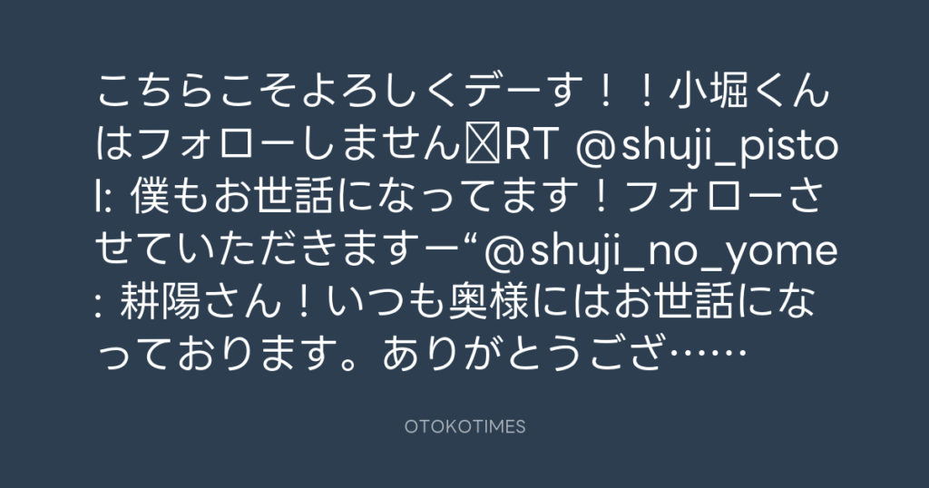 こちらこそよろしくデーす!!小堀くんはフォローしませんRT @shuji_pistol: 僕も... -