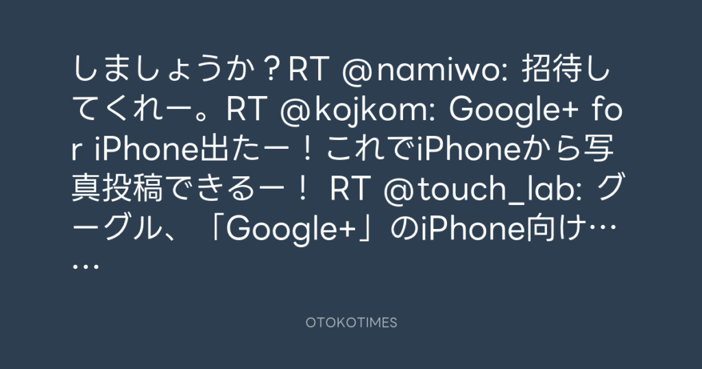 しましょうか?RT @namiwo: 招待してくれー。RT @kojkom: Google+ for iPhone出た... -
