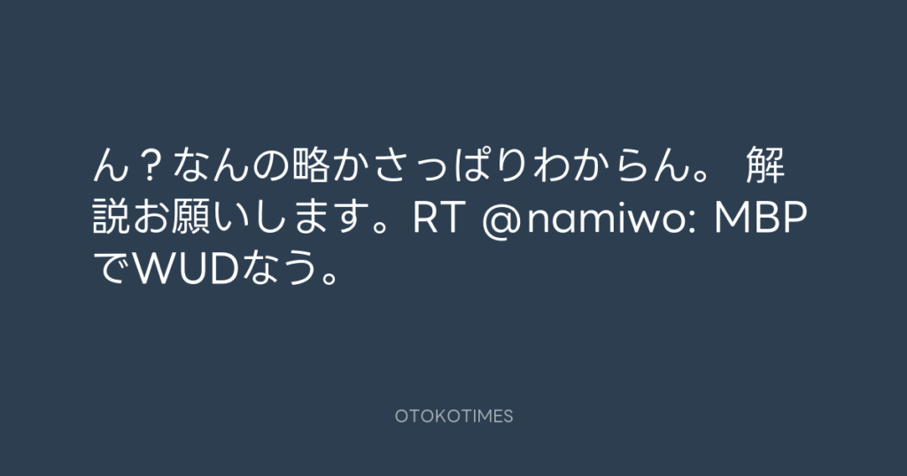 ん?なんの略かさっぱりわからん。 解説お願いします。RT @namiwo: MBPでWUDなう。 -