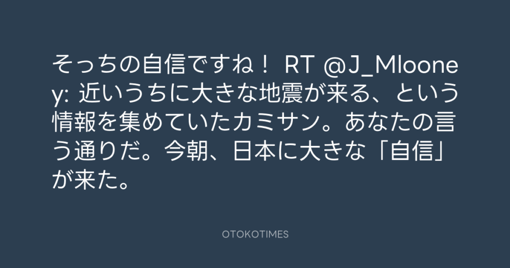 そっちの自信ですね! RT @J_Mlooney: 近いうちに大きな地震が来る、という情報を... -
