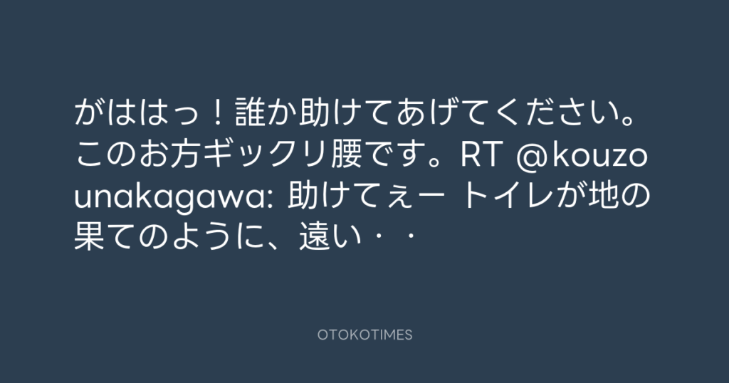 がははっ!誰か助けてあげてください。このお方ギックリ腰です。RT @kouzounakagaw... -