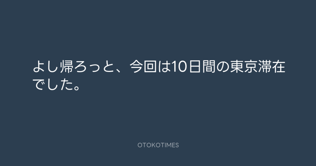 よし帰ろっと、今回は10日間の東京滞在でした。 -