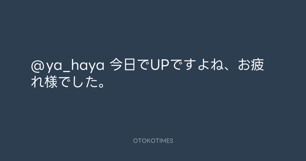@ya_haya 今日でUPですよね、お疲れ様でした。 -