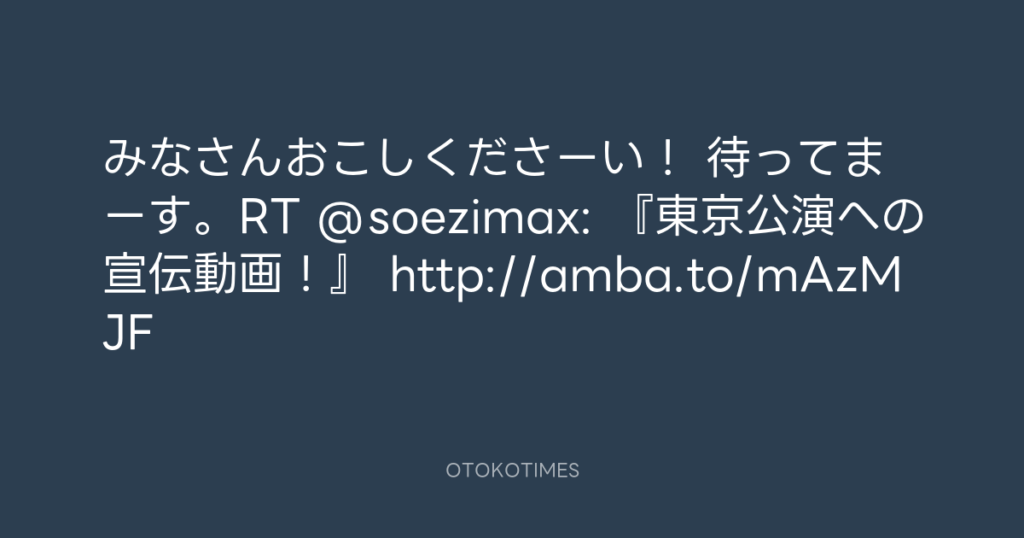 みなさんおこしくださーい! 待ってまーす。RT @soezimax: 『東京公演への宣伝動画... -