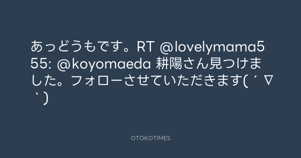 あっどうもです。RT @lovelymama555: @koyomaeda 耕陽さん見つけました。フォロー... -