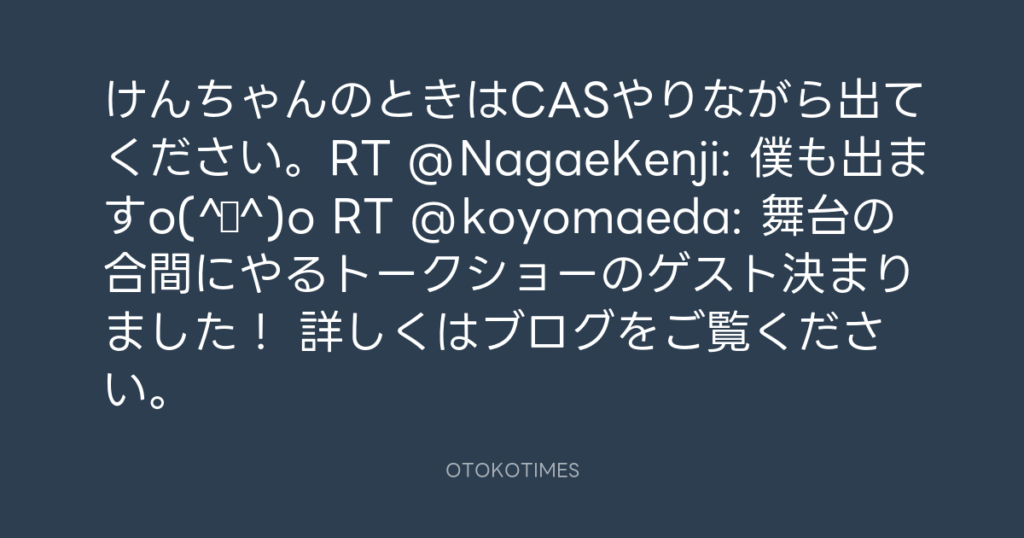 けんちゃんのときはCASやりながら出てください。RT @NagaeKenji: 僕も出ますo(^▽^)... -