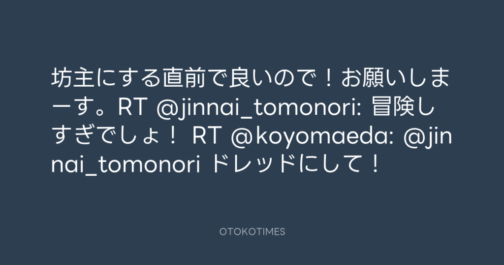 坊主にする直前で良いので!お願いしまーす。RT @jinnai_tomonori: 冒険しすぎでし... -