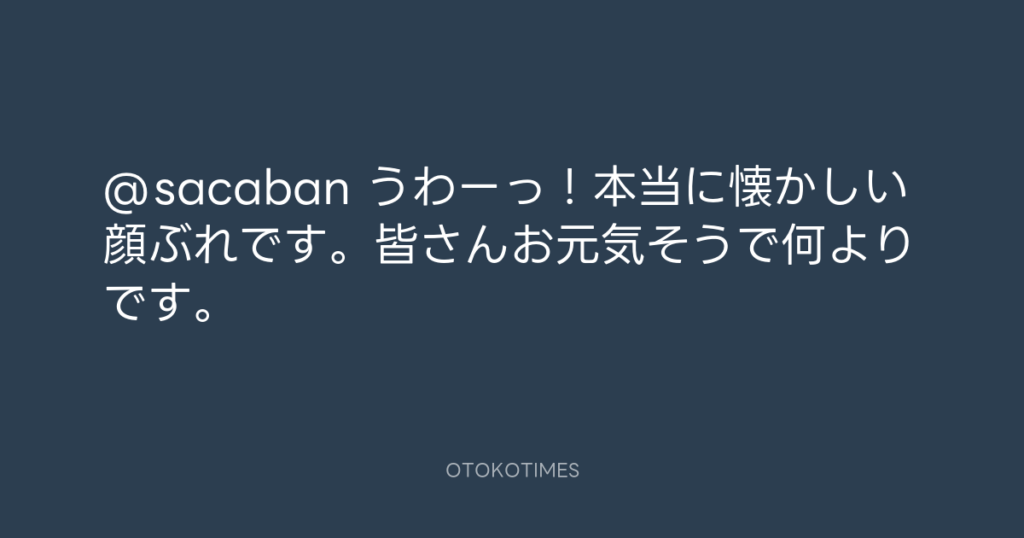 @sacaban うわーっ!本当に懐かしい顔ぶれです。皆さんお元気そうで何よりです。 -