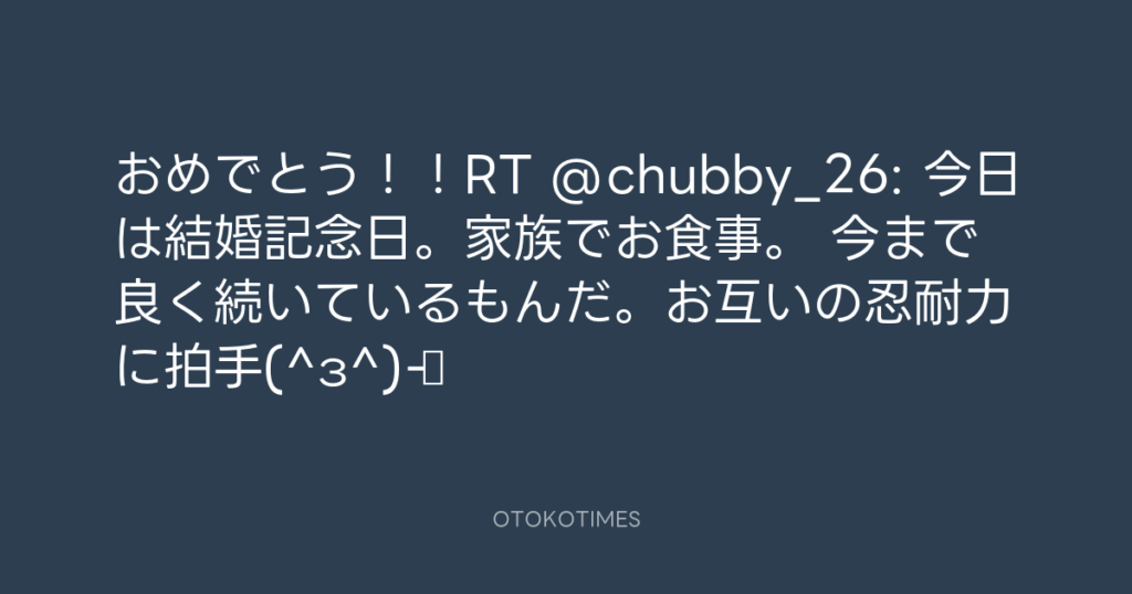 おめでとう!!RT @chubby_26: 今日は結婚記念日。家族でお食事。 今まで良く続い... -