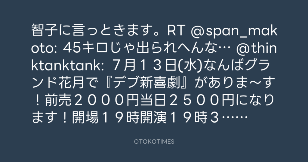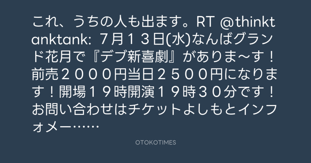 これ、うちの人も出ます。RT @thinktanktank: 7月13日(水)なんばグランド花月で... -