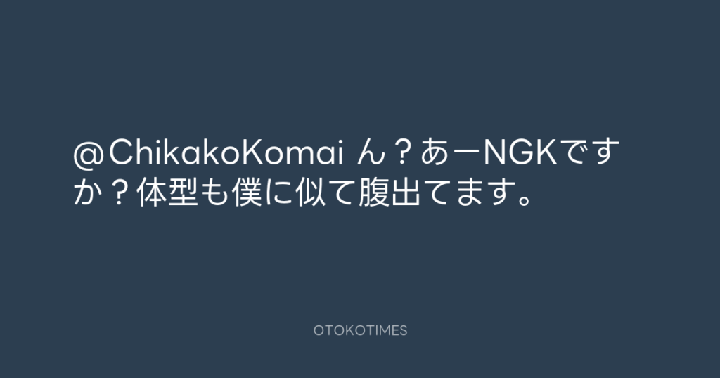 @ChikakoKomai ん?あーNGKですか?体型も僕に似て腹出てます。 -