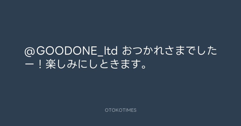 @GOODONE_ltd おつかれさまでしたー!楽しみにしときます。 -