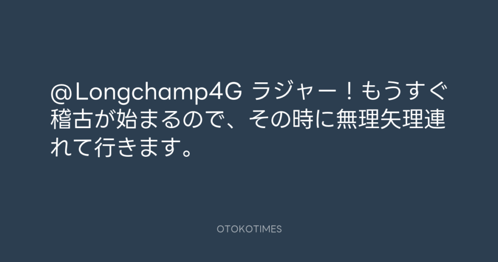 @Longchamp4G ラジャー!もうすぐ稽古が始まるので、その時に無理矢理連れて行きま... -