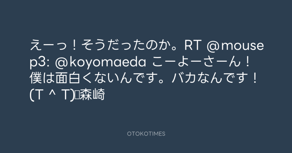 えーっ!そうだったのか。RT @mousep3: @koyomaeda こーよーさーん!僕は面白くな... -