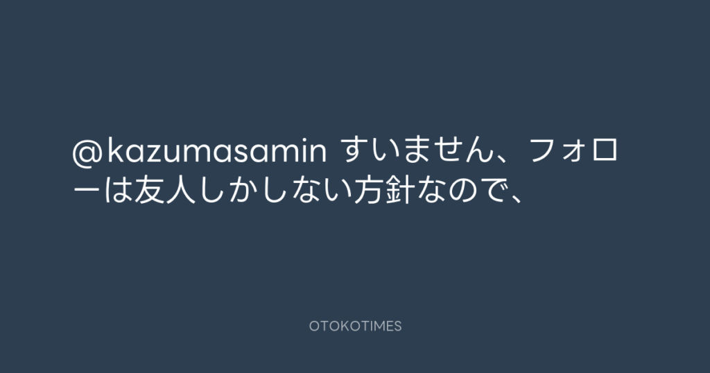 @kazumasamin すいません、フォローは友人しかしない方針なので、 -