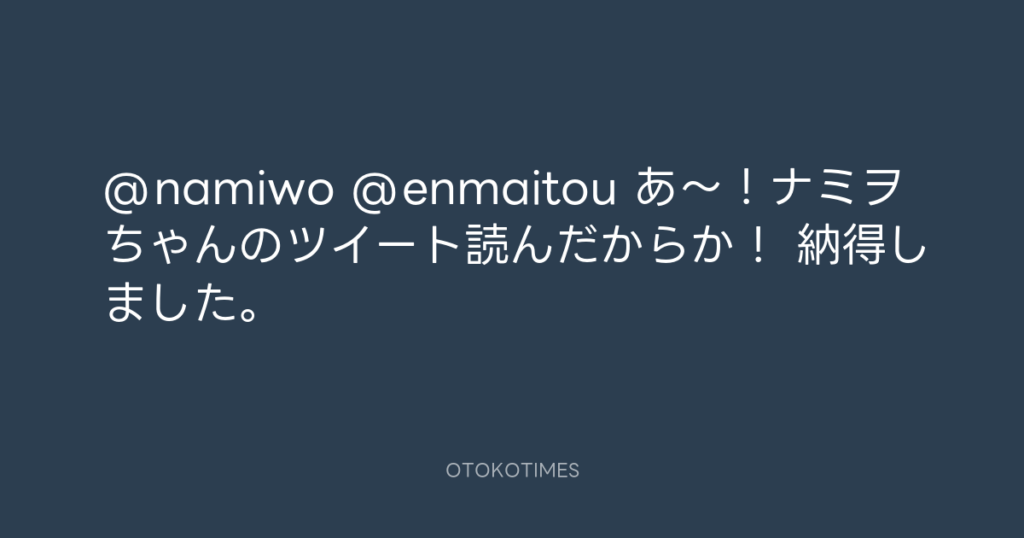 @namiwo @enmaitou あ〜!ナミヲちゃんのツイート読んだからか! 納得しました。 -
