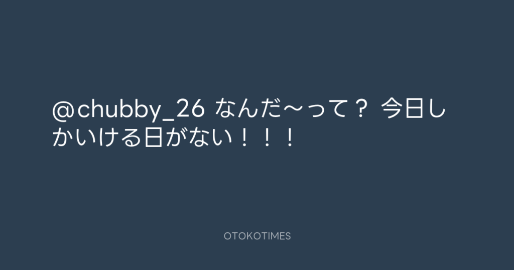 @chubby_26 なんだ〜って? 今日しかいける日がない!!! -