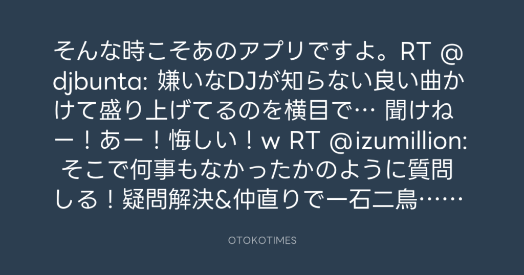 そんな時こそあのアプリですよ。RT @djbunta: 嫌いなDJが知らない良い曲かけて盛り...