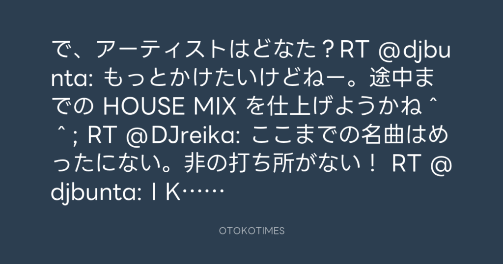 で、アーティストはどなた?RT @djbunta: もっとかけたいけどねー。途中までの HOU... -