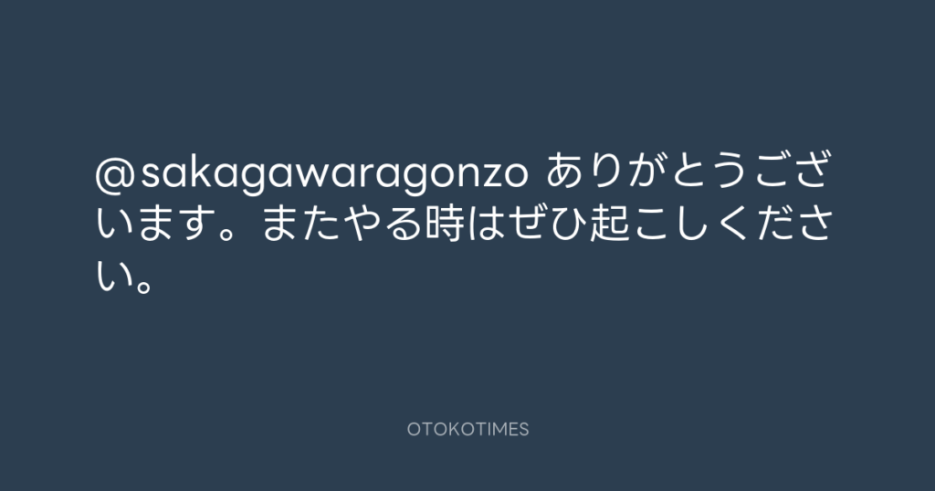 @sakagawaragonzo ありがとうございます。またやる時はぜひ起こしください。 -