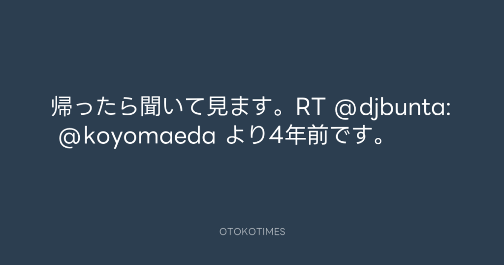 帰ったら聞いて見ます。RT @djbunta: @koyomaeda より4年前です。 -