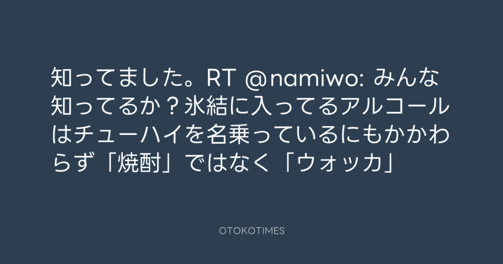 知ってました。RT @namiwo: みんな知ってるか?氷結に入ってるアルコールはチュー... -