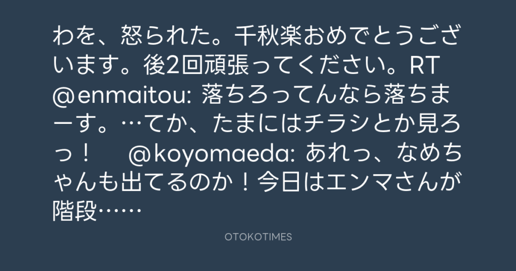 わを、怒られた。千秋楽おめでとうございます。後2回頑張ってください。RT @enmait... -