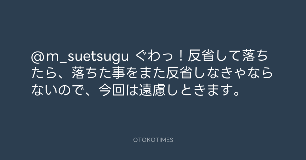 @m_suetsugu ぐわっ!反省して落ちたら、落ちた事をまた反省しなきゃならないので... -