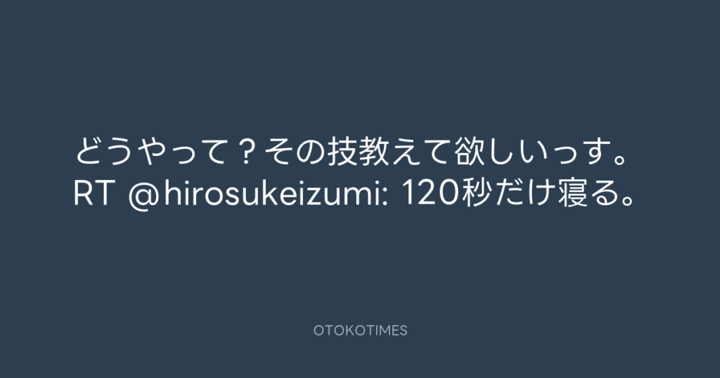 どうやって?その技教えて欲しいっす。RT @hirosukeizumi: 120秒だけ寝る。 -