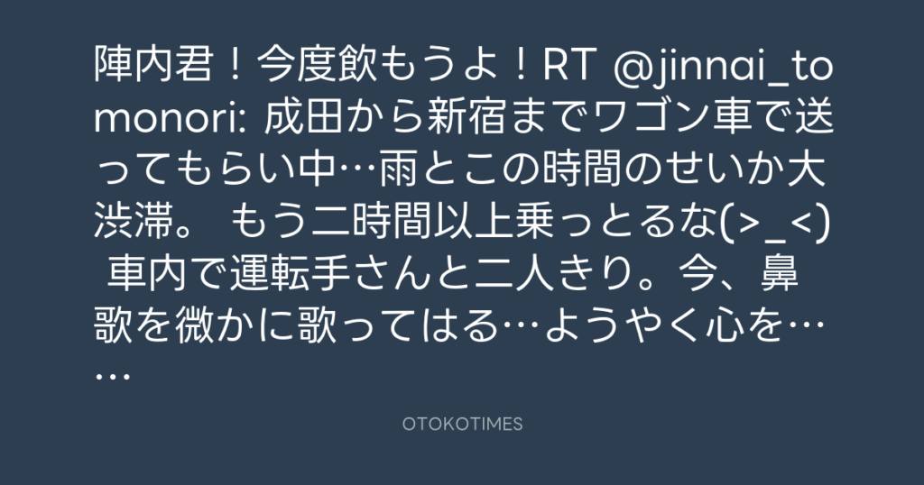 陣内君!今度飲もうよ!RT @jinnai_tomonori: 成田から新宿までワゴン車で送っても...