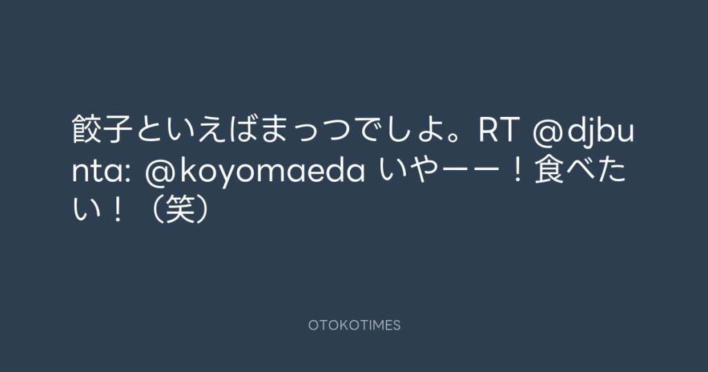 餃子といえばまっつでしよ。RT @djbunta: @koyomaeda いやーー!食べたい!(笑)