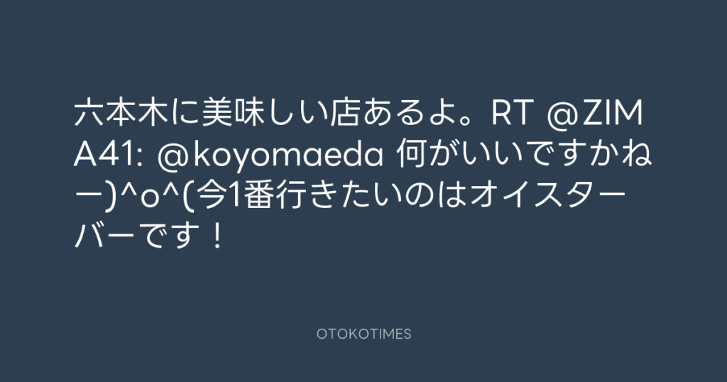 六本木に美味しい店あるよ。RT @ZIMA41: @koyomaeda 何がいいですかねー)^o^(今1番... -